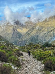 Depois de um bom café da manhã, estaremos dispostos a continuar a nossa caminhada (considerada a mais forte da viagem). Às 7h00 vamos fazer a travessia por Salkantay – pampa para ir ao lado esquerdo do nevado chamado Umantay, que está perto do nevado Salkantay – Salcantay. Chegaremos por volta das 11h00, ao ponto mais alto da trilha. Passagem Salkantay Umantay à 4.650 metros a partir deste ponto, veremos as montanhas e geleiras do nevado Salkantay, podendo muito bem apreciar as impressionantes avalanches que ocorrem na montanha de Salkantay – Salcantay. Teremos uma parada de meia hora para tirar fotos e também participaremos a uma cerimônia do pago a Pacha Mama, que será feita pelo nosso guia da trilha perto das montanhas de Umantay e Salkantay apreciar a paisagem. Descemos 1h30 a mais para almoçar no povoado de Huayracmachay. Em seguida continuaremos a nossa caminhada pela borda da floresta junto à paisagem extraordinária. Até chegar ao povoado de Chaullay ou Colpapampa (2.950 m.a.n.m) onde será nossa segunda noite de acampamento.